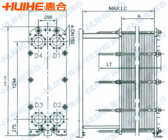 2. Compact structure: plates are closely arranged, compared with other types of heat exchanger, plate heat exchanger has less covering area and space, the area is only 1/5 of the tubular heat exchanger.