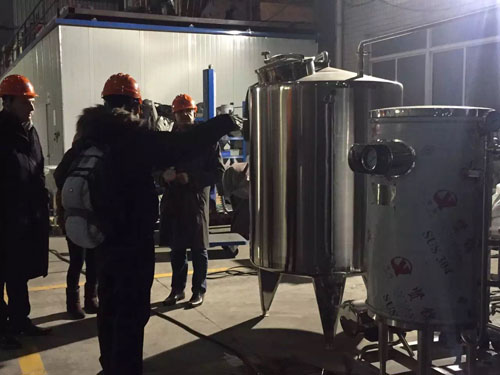 經(jīng)過與外貿(mào)業(yè)務(wù)員的多次溝通與確認(rèn),加拿大客戶于2015年10月在我公司下單一臺真空乳化機(jī)。目前設(shè)備已接近收尾工作,客戶來我公司驗(yàn)貨,業(yè)務(wù)員與技術(shù)工程師熱情接待并為其講解了真空乳化機(jī)的各組成部件與操作方法,并進(jìn)行了試機(jī)操作,后又帶客戶參觀了我公司的其它食品機(jī)械設(shè)備。