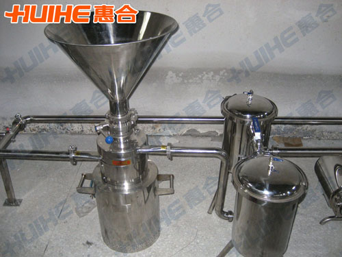 本機(jī)中與物料接觸的部分采用耐蝕不銹鋼材料。符合食品衛(wèi)生的要求。該機(jī)的工作是靠聯(lián)結(jié)在封閉電動(dòng)機(jī)不銹鋼套軸上的翼輪來(lái)達(dá)到混合的目的,并由不銹鋼彈簧、壓緊密封圈、密封圈等組成機(jī)械密封裝置,進(jìn)料斗與泵體用夾緊箍連接,電動(dòng)機(jī)與泵座用螺栓連接在機(jī)架上,整機(jī)可作任意移動(dòng),可以不用固定的安裝基礎(chǔ)。