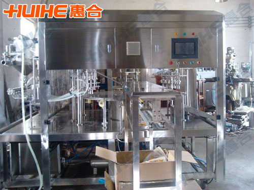 自立袋灌裝機適用于有吸嘴的袋裝可吸果凍、豆奶制品、 鮮奶、 酸奶、純凈水、 果汁、冰淇淋、食用油、 調(diào)味品、洗滌化工液料,洗衣液等的充填旋蓋。