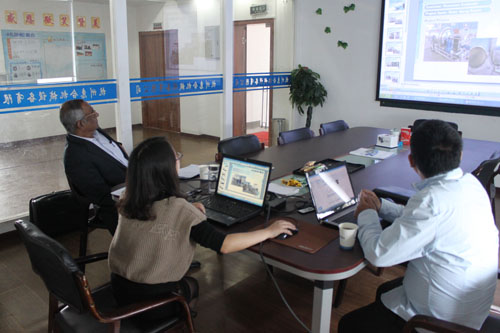 The customer from India need a machine to sterilize milk packed in plastic bottles so he comes to our company to purchase autoclave. The follow picture is our sales manager show the PPT to the customer and then takes the customer to our factory. The customer talks about the detail sterilization process with our engineer.