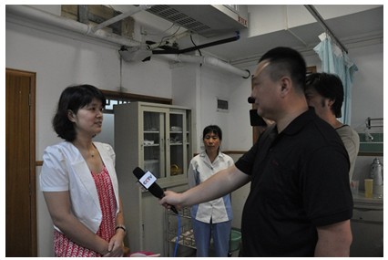 正在醫(yī)院進(jìn)行采訪的中央電視臺(tái)記者獲知完達(dá)山為五胞胎家庭解決寶寶們?nèi)甑目诩Z,現(xiàn)場(chǎng)采訪了王榮霞。