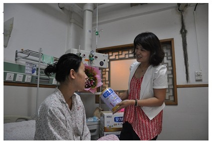 “你好!我們是完達(dá)山乳業(yè)的。特意從黑龍江趕過來看望你和孩子,我們還給寶寶們帶來了完達(dá)山更好的奶粉——安力聰奶粉”,完達(dá)山乳業(yè)的代表王榮霞對(duì)五胞胎的媽媽鄭小妮說。